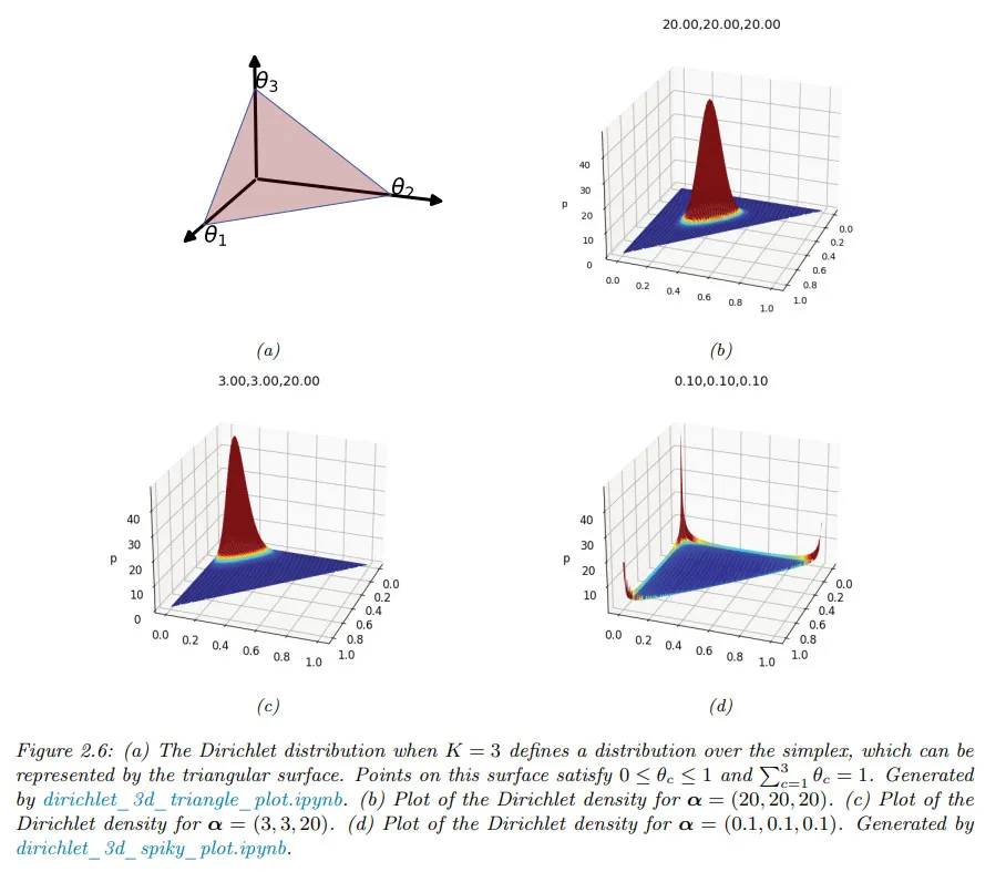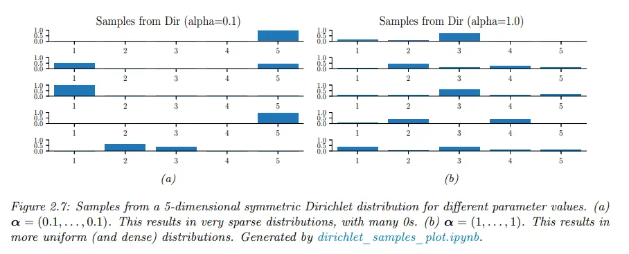 모든 에 대해 이면 simplex의 코너에 spike를 갖는다. 일 때 분포의 샘플은 희소하다. 아래 그림 참조.