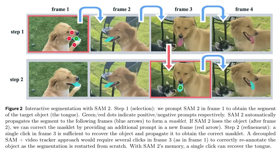 주석 시간이 개선되었음에도, 이 decoupled 접근은 이전 memory 없이 중간 프레임에서 처음부터 mask를 주석처리해야 한다. 그 후 interactive 이미지 segmentation과 mask 전파를 통합 모델에서 수행할 수 있는 fully-featured SAM 2를 개발하게 되었다.