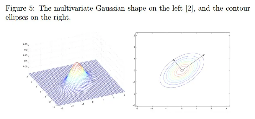 그림 5는 분포와 레벨 집합의 물리적 형태를 그린다. 여기서 확률은 각 타원을 따라 일정하다.