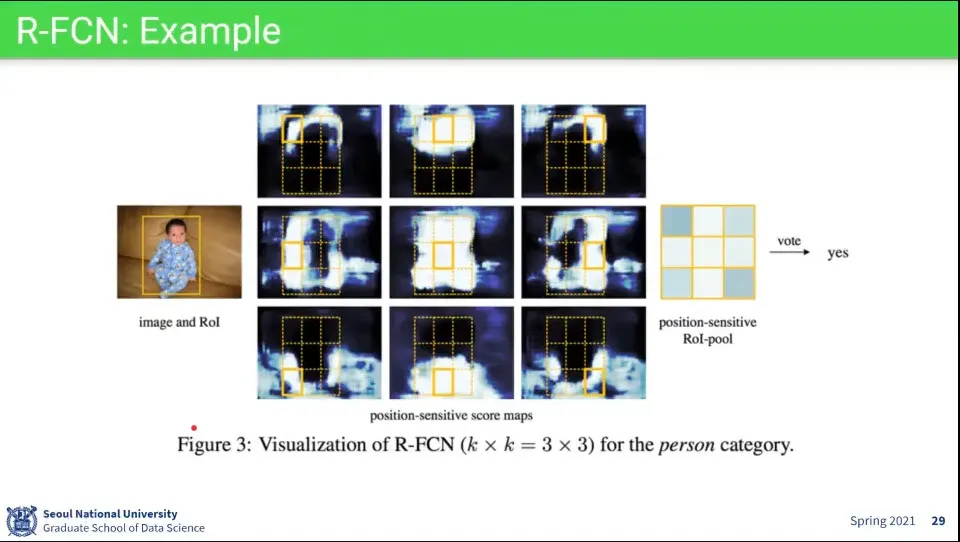 이렇게 위치별로 feature를 구분해서 처리하기 때문에 Position-sensitive score map이라고 한다.