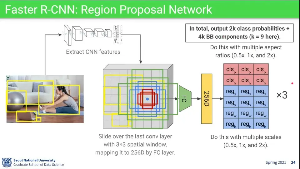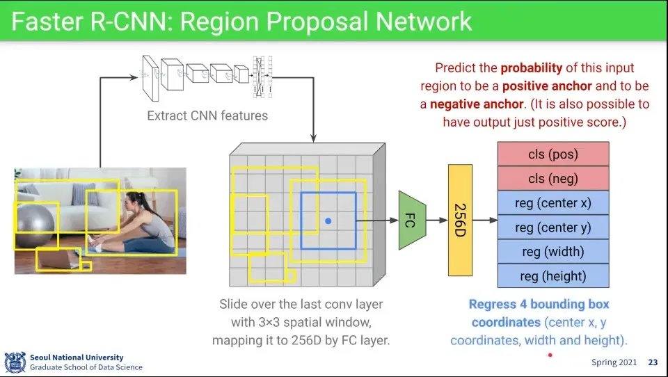거기에 3x3 크기로 slide 하면서 이미지에 대해 positive anchor, negative anchor일 확률을 예측하고, x, y, w, h를 찾는다.