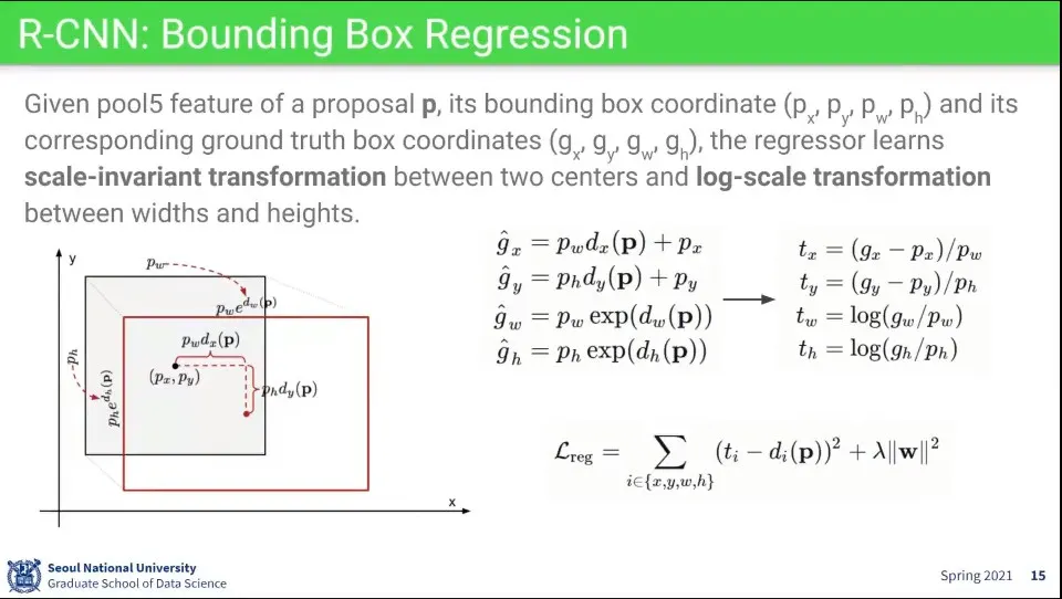 w, h는 실제 측정된 w, h를 proposal의 w, h로 나눈 후에 log를 씌워서 처리한다.