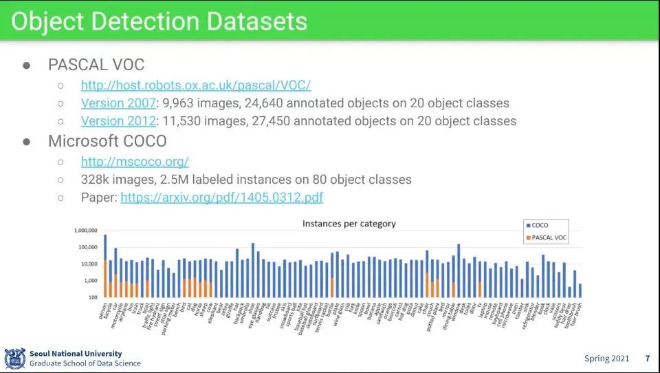 예전에는 Pascal VOC를 많이 썼는데, 요즘에는 MS의 COCO를 많이 씀