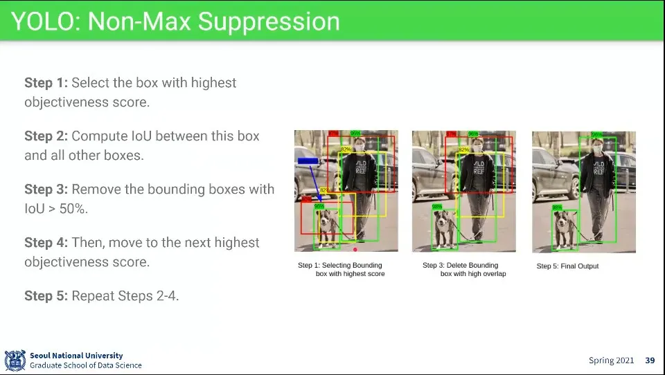 최종적으로는 그렇게 찾은 모든 object를 합쳐서 Non-Max Suppression을 해서 물체를 한 번에 찾아냄