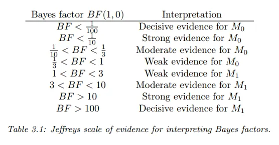 베이지안 가설 검정은 null hypothesis 과 alternative hypothesis 의 두 모델이 있는 베이지안 모델 선택의 특별한 경우이다. Bayes factor를 marginal likelihood의 비율로 정의하자.