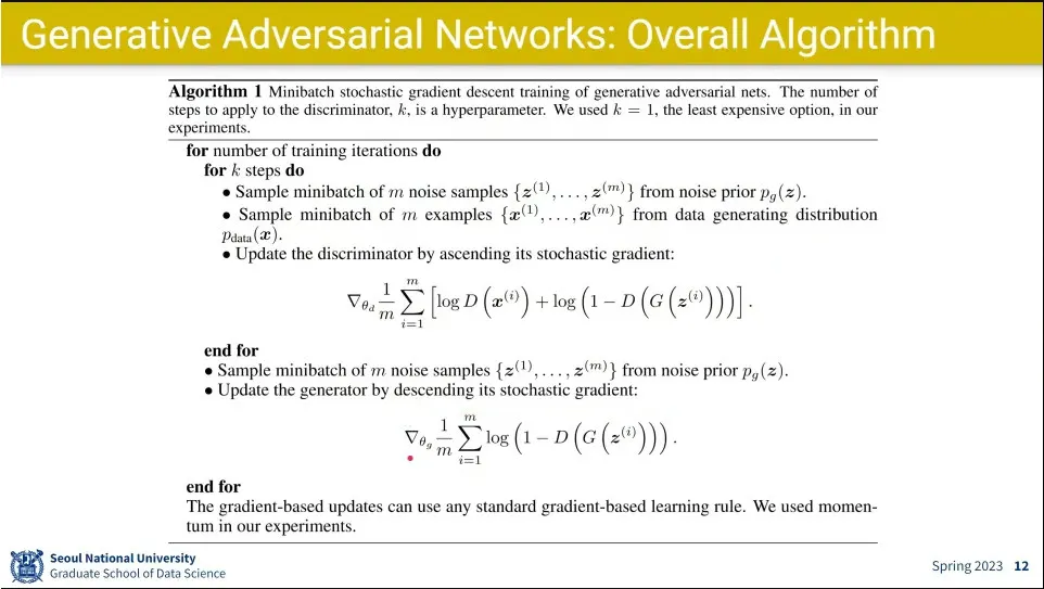 generator은 매번 하고, discriminator는 k번에 1번만 한다.