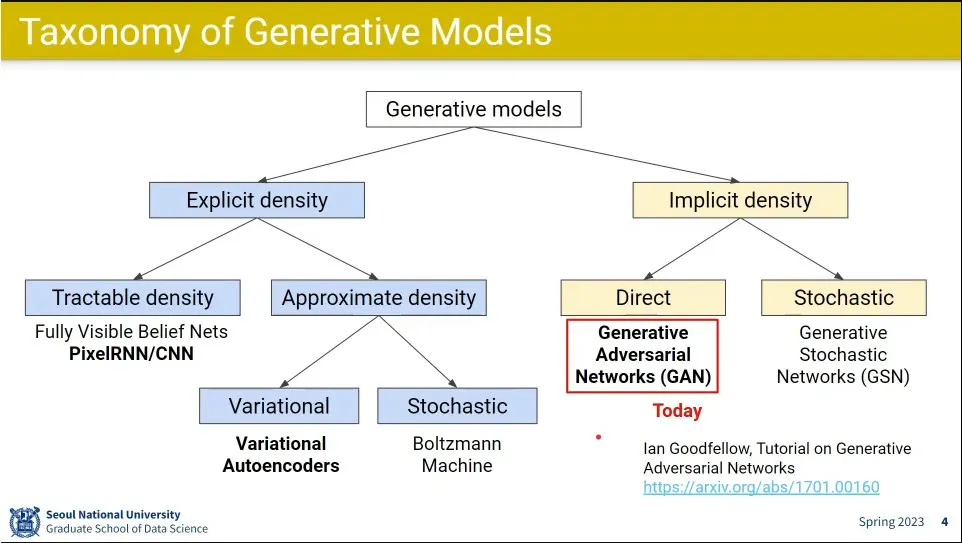 GAN은 explicit 모델과 달리 를 직접 생성하지 않음.