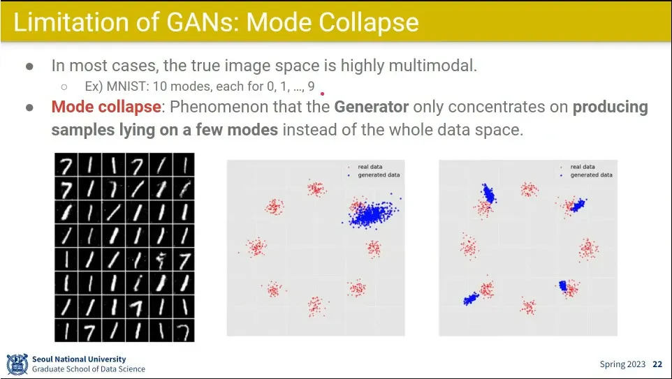 Mode Collapse는 GAN의 가장 큰 한계이고 현재까지도 해결이 안 된 문제.