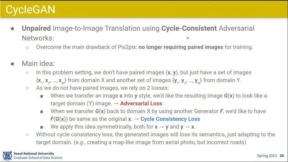 Pix2pix의 한계를 개선한 것이 CycleGAN