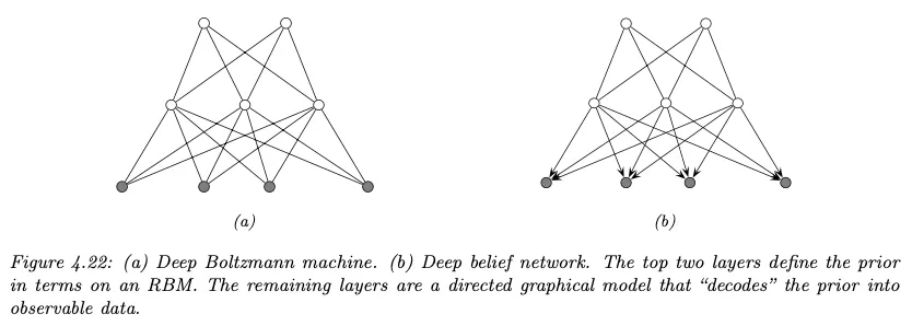RBM을 여러 레이어로 쌓아서 deep 버전을 만들면 Deep Boltzmann Machine이라고 한다. 아래 그림 참조.