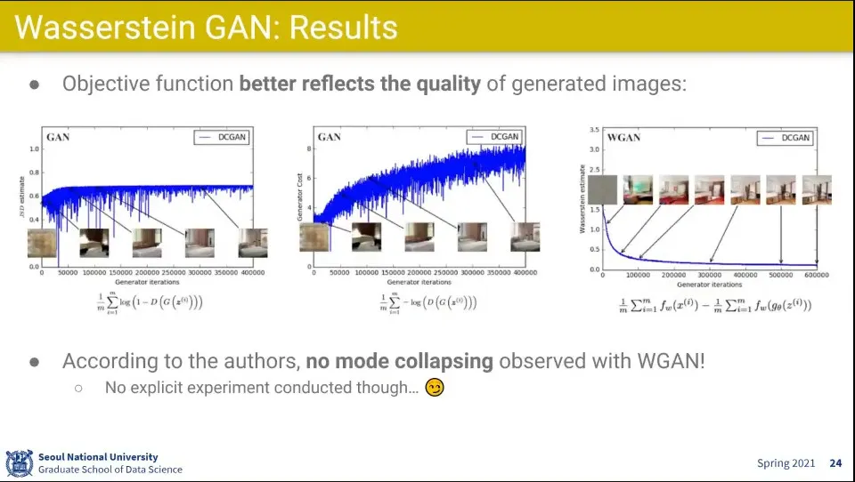 그것만 바꿨더니 GAN에서는 실제 점수와 결과 매치가 잘 안됐는데, WGAN은 점수와 실제 이미지의 성능이 잘 매치됨