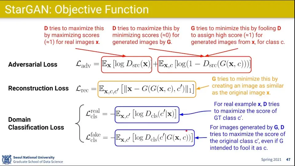 StarGAN의 loss 함수들