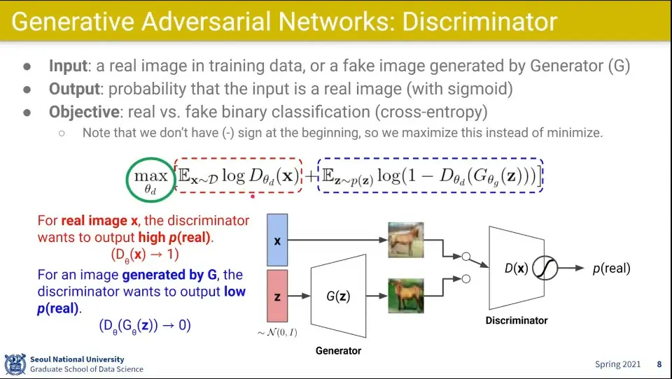 식에서 왼쪽 부분은 진짜 사진에서 들어오는 값으로 그 값을 최대화 하도록 하고