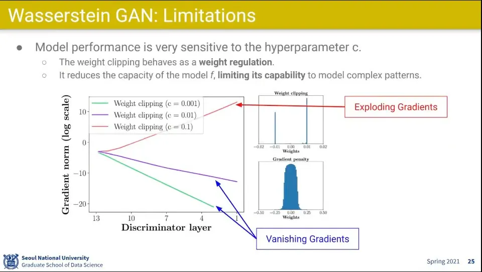 그러나 WGAN은 clip 하는 c 를 얼마나 주느냐가 문제가 됨