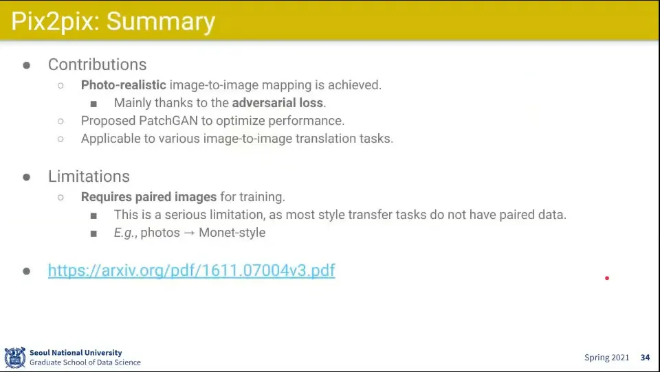그런데 학습 이미지가 pair가 필요해서 한계가 있음