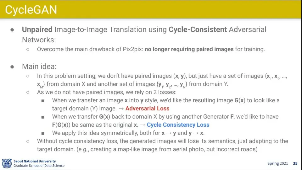 CycleGAN은 pair 된 이미지가 없어도 학습할 수 있다는데 큰 영향력을 끼침