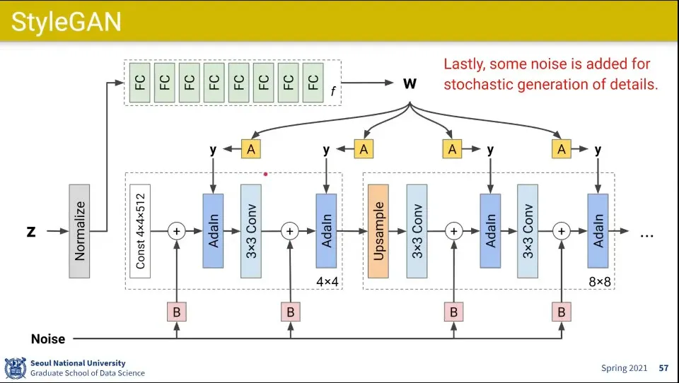 이 noise들은 작은 단위에서 변화를 주는데, 예컨대 금발이라고 해도 다 같은 금발이 아닌 것처럼 그런 부분에 영향을 주고