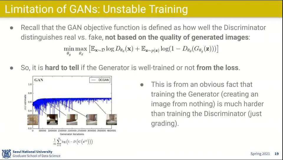 Unstable Training이 DCGAN에서 개선이 되긴 했지만 여전히 잘 안 됨