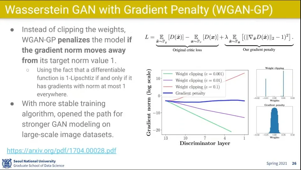 WGAN의 강제로 c로 clip 하는거를 개선한게 WGAN-GP(Gradient Penalty)