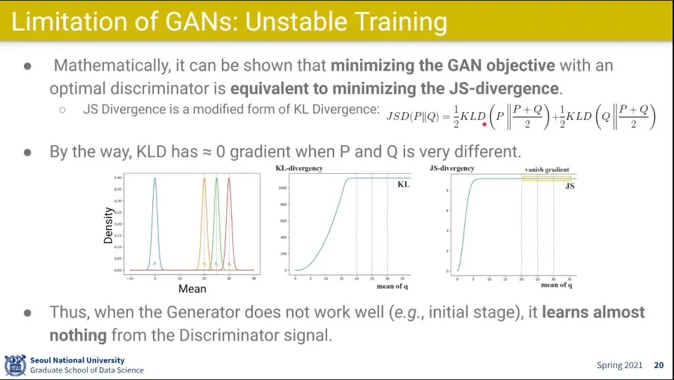 KL-divergency나 JS-divergency로 보나 일정 영역에서 vanishing gradient가 발생하는 문제가 발생