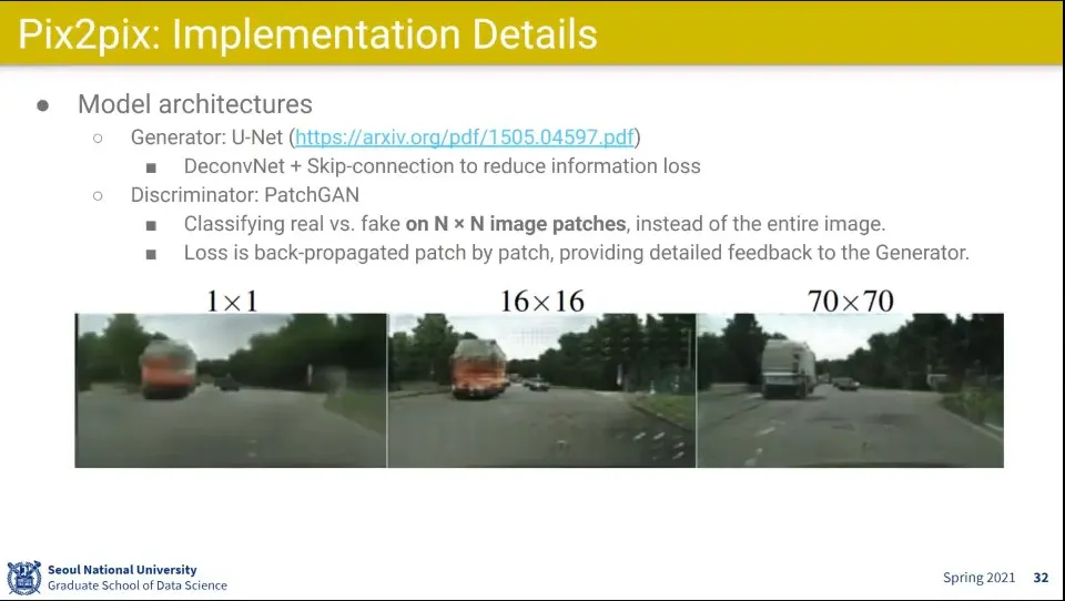 Discriminator는 70x70 패치를 사용 (pix2pix랑 같음)