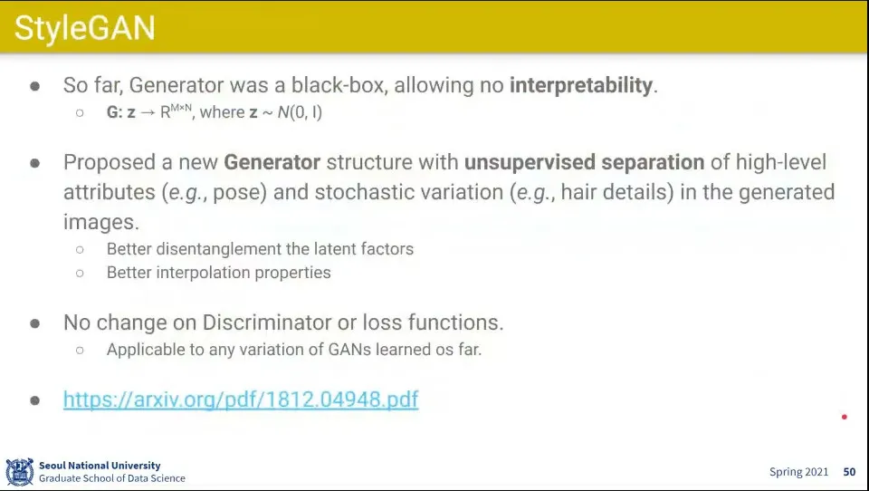 Generator는 black-box라서 해석 불가능했는데, 그걸 개선한게 StyleGAN