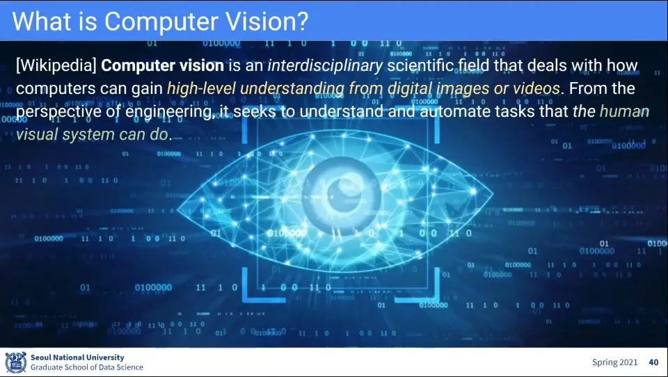 원래 Machine Learning과 Vision 연구는 다른 것이었는데 현재는 같은 것이 됨
