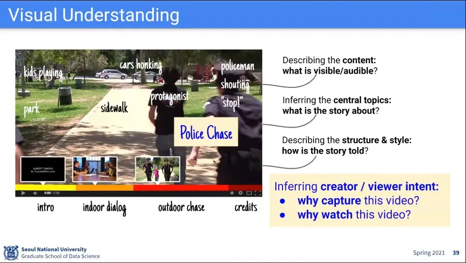 비디오가 주어졌을 때 내용을 파악하고 추천, 검색 등에 활용할 수 있음