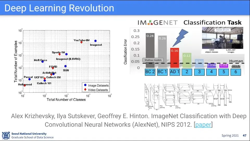 딥러닝의 혁명은 2012년 AlexNet이 ImageNet 대회에서 우승하면서 시작 됨