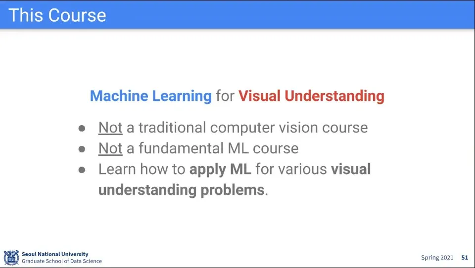 이 수업은 머신러닝 기법을 이용한 시각 이해 수업임
