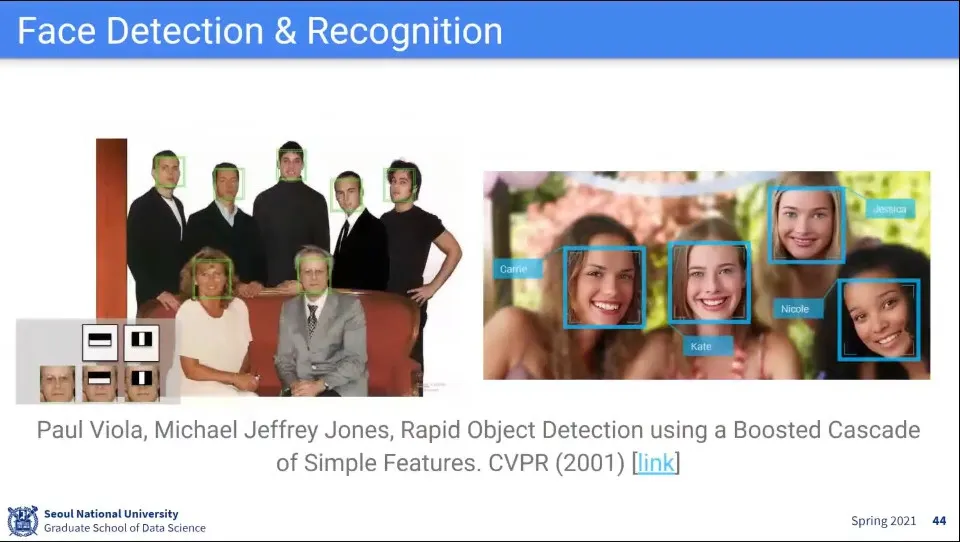얼굴 인식은 2001년부터 많은 연구가 있었음