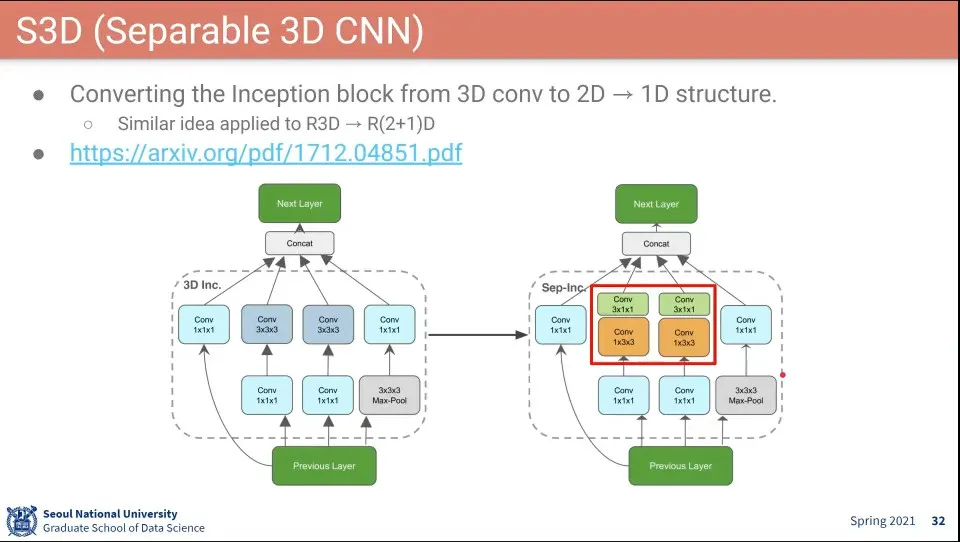 I3D와 같은데 시간, 공간을 쪼갠 것