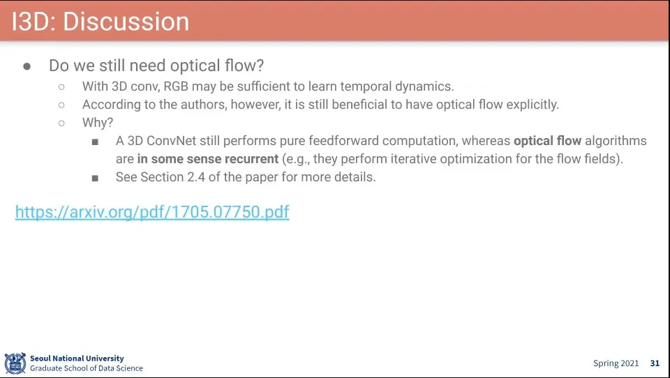 I3D에서도 Optical Flow를 쓰는게 일단 도움이 되었다고 함