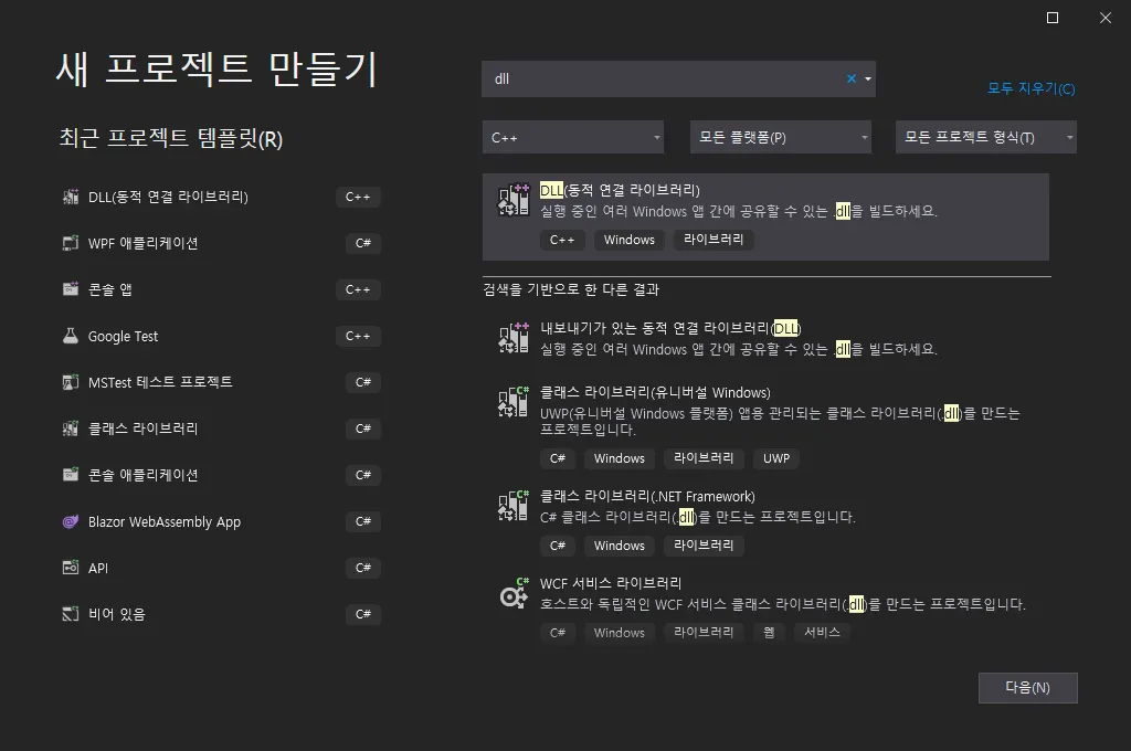 일단 새 프로젝트를 DLL(동적 연결 라이브러리)로 만든다.