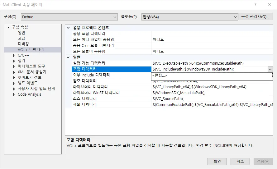 이것은 VC++ 디렉터리의 포함 디렉터리에 추가해도 되지만, 거기에는 프로젝트와 Window SDK 등이 포함되어 있으므로 1번 경로에 넣는게 깔끔하다.