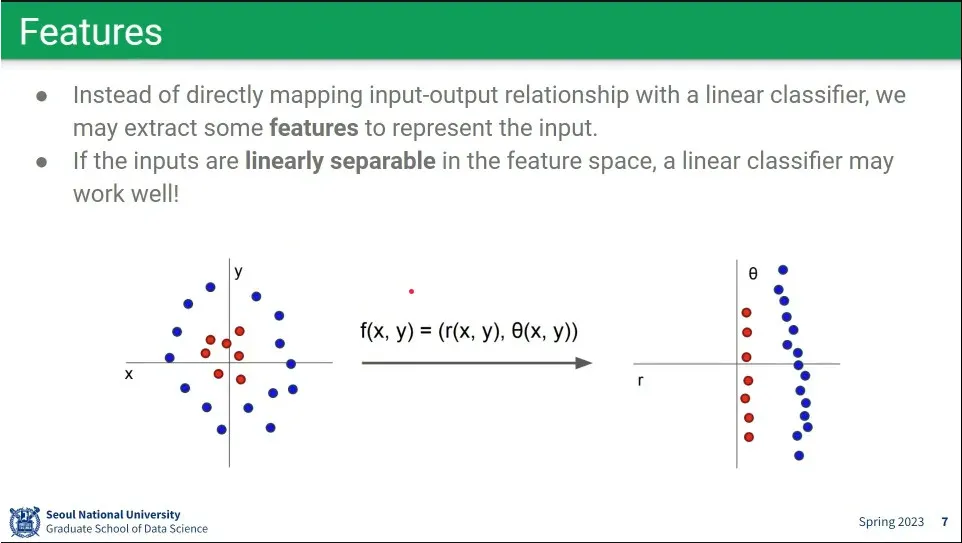 Linear로 해결하기 위해 애초에 feature를 linear하게 변형한 후에 처리하는 방법을 시도 해 봄.