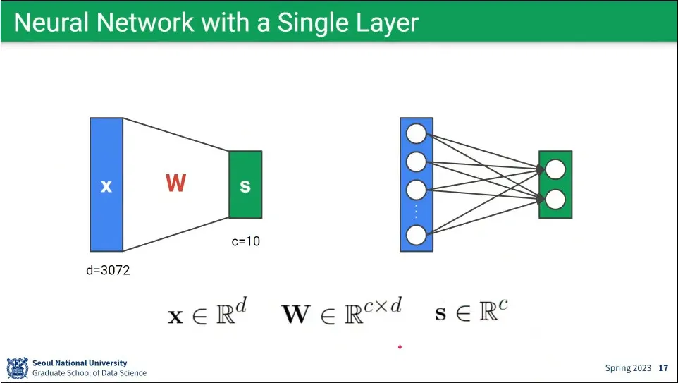 single layer의 뉴럴 네트워크는 위와 같이 표현 가능