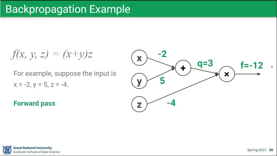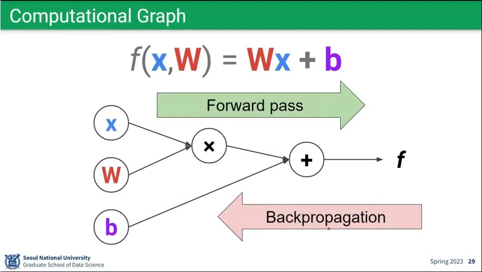 앞으로 가는 계산이 forward pass이고, 거꾸로 오는 것이 backpropagation