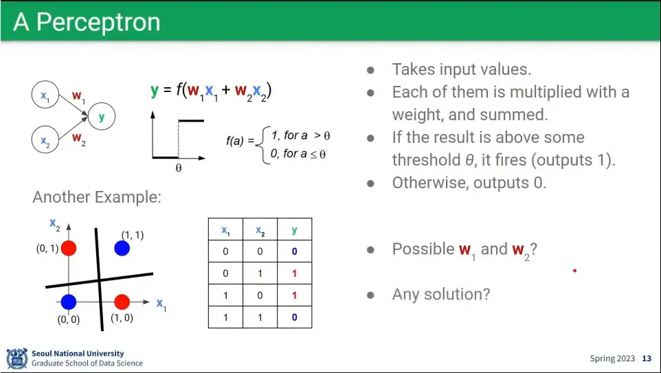 그런데 perceptron을 이용해서 XOR 연산이 안 됐음. 이것 때문에 1차 AI 겨울이 옴