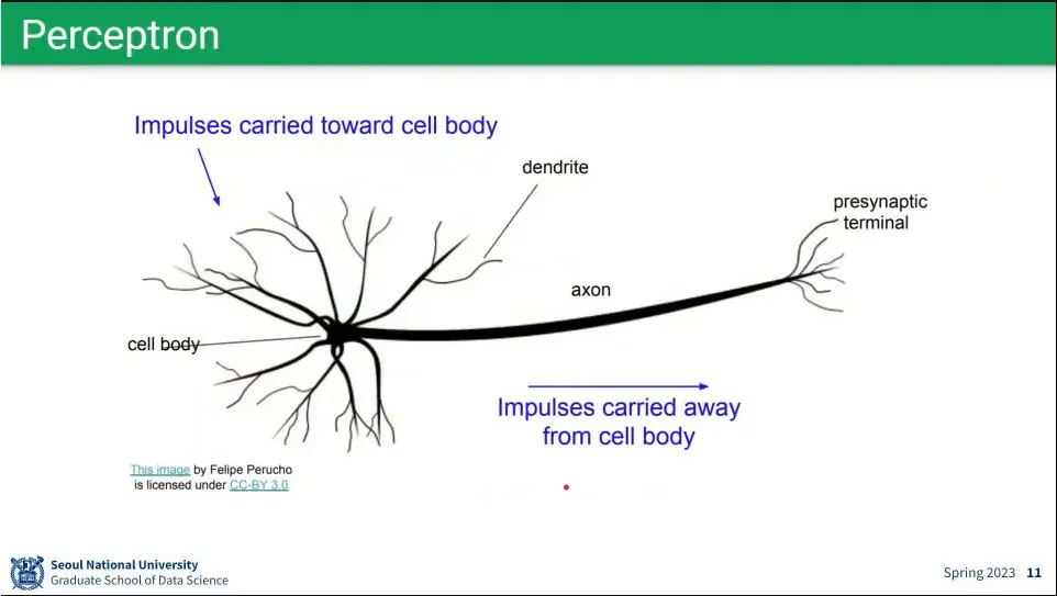 뉴런을 모사해서 perceptron을 만듦. 뉴럴 네트워크는 perceptron을 모아 놓은 것.