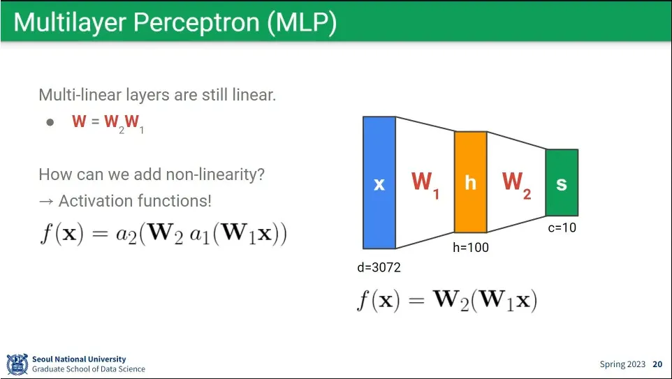 행렬식으로만 보면 single layer나 multi layer는 동일하게 볼 수 있음.