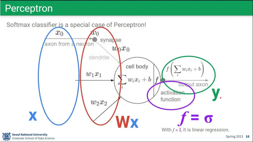 퍼셉트론 구조는 softmax classifier와 동일하다.