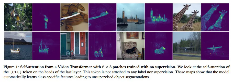 Self-supervised ViT feature는 명시적으로 scene layout, 특히 object boundary를 포함한다. 그림 1 참조. 이 정보는 last 블록의 self-attention 모듈에서 직접 접근 가능하다.