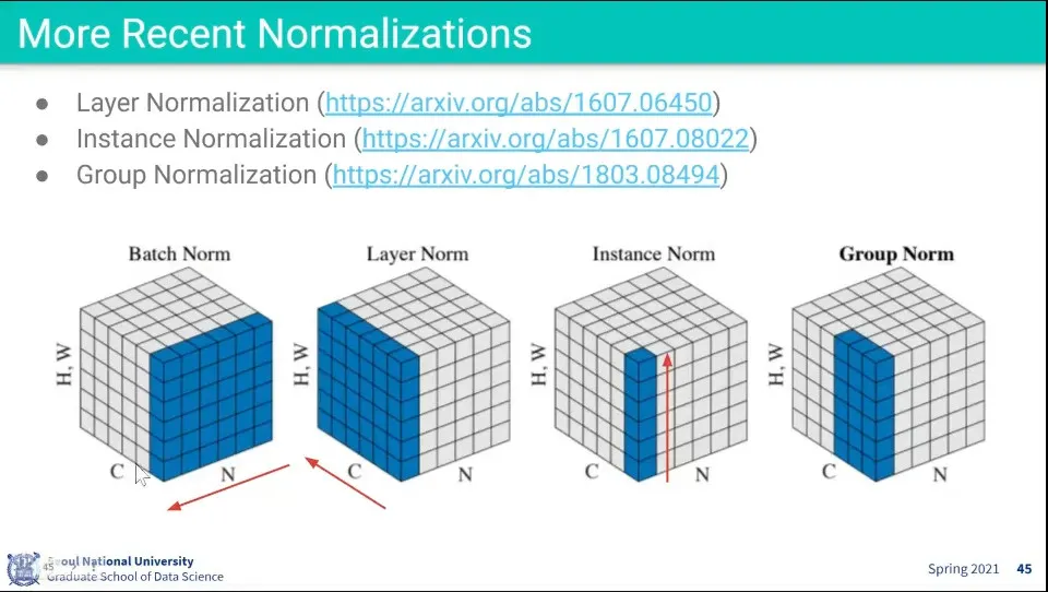 Batch Normalization을 응용하여 다양한 방식으로 Normalization 하는 방법들이 발표 됨