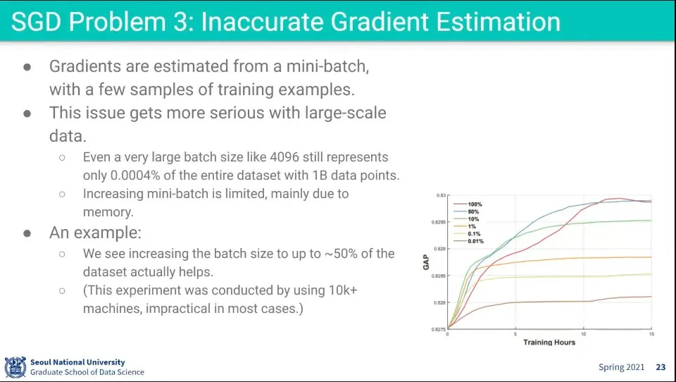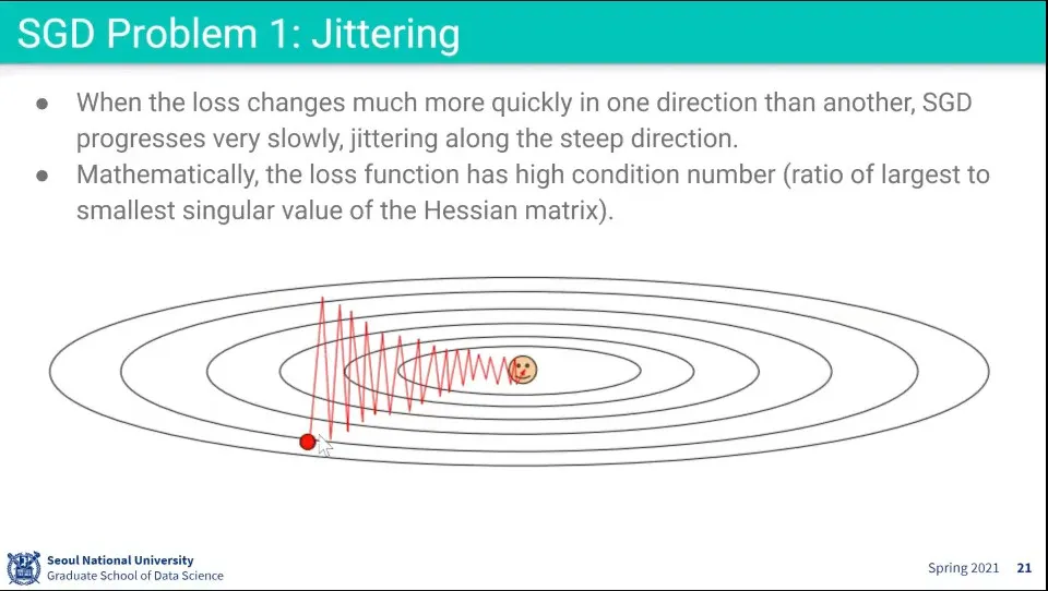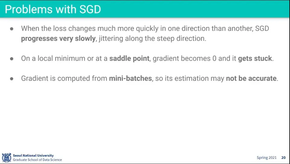 Stochastic Gradient Descent도 몇 가지 문제가 있음