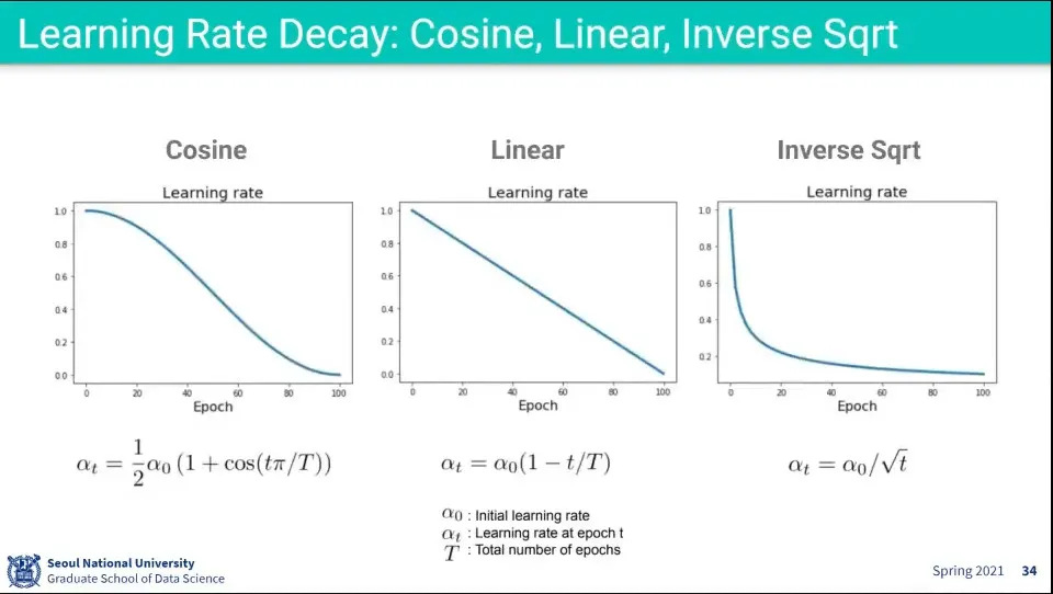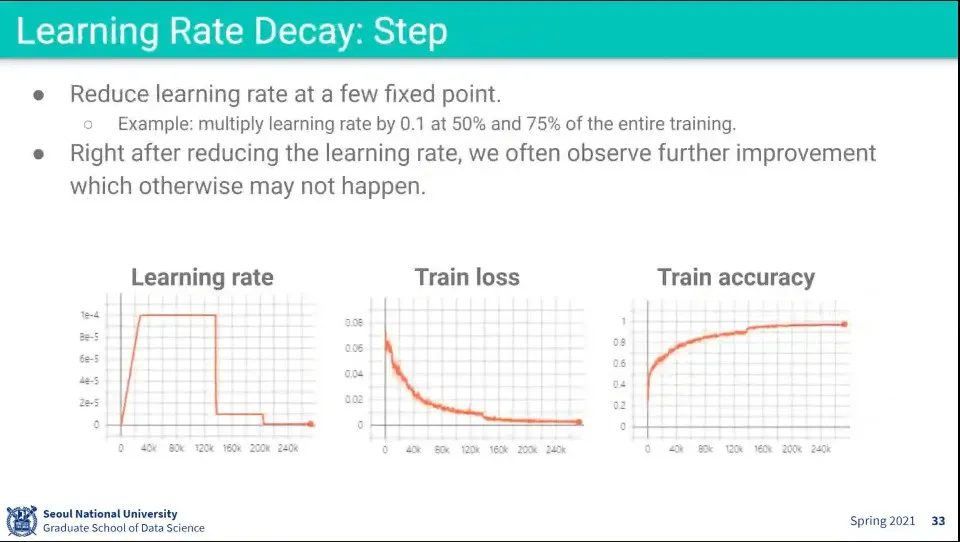 Initial Learning rate는 모델과 데이터셋에 맞게 적용해야 함