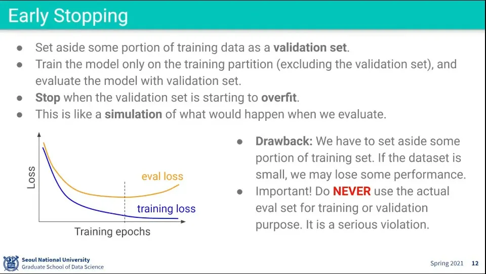 Early Stopping은 Overfitting이 발생하기 전에 멈추는 것