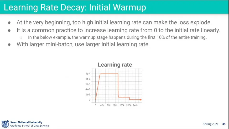 맨 처음에는 warm up으로 작게 시작해서 조금씩 키우는 방법을 사용함.
