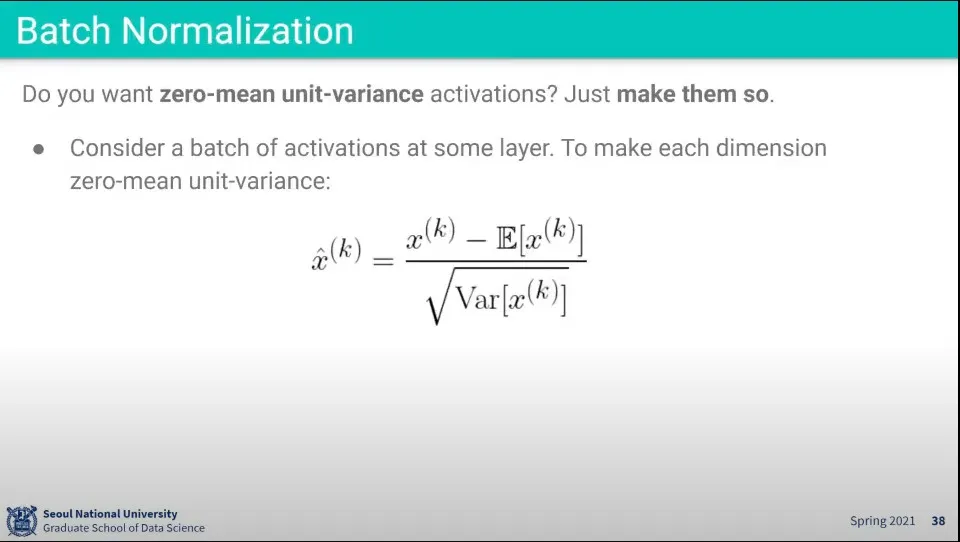 뒤의 layer들도 zero-centered가 되도록 하는게 batch normalization