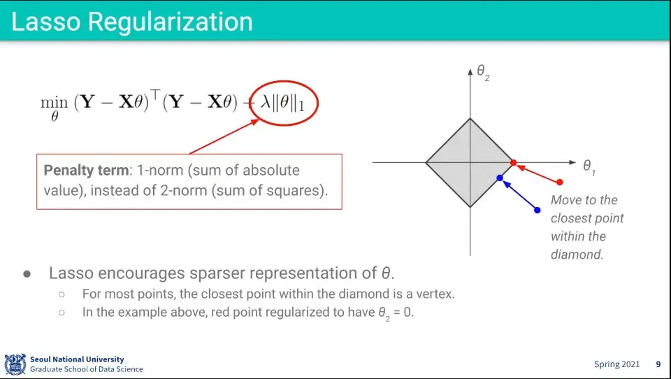 L1 Regularization을 Lasso Regularization이라고 한다.